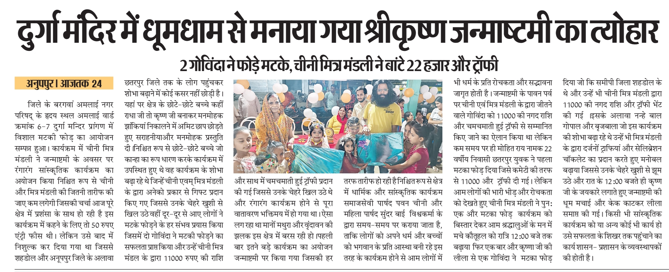 HomeAnnupur दुर्गा मंदिर में धूमधाम से मनाया गया श्री कृष्ण जन्माष्टमी का त्यौहार byShivani -August 28, 2024 0 Tags Annupur Facebook Twitter
