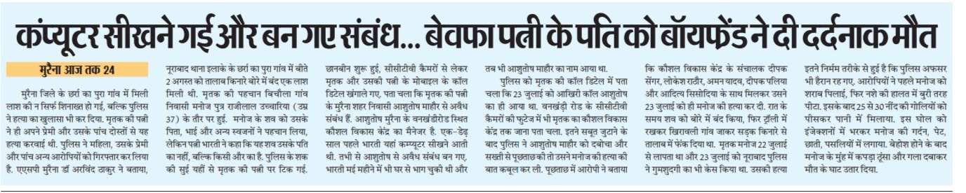 Homemurena कंप्यूटर सीखने गई और बन गए संबंध, बेवफा पत्नी के पति को बॉयफ्रेंड ने दर्दनाक मौत mot Aajtak24 News bySachin -August 10, 2024 0 कंप्यूटर सीखने गई और बन गए संबंध, बेवफा पत्नी के पति को बॉयफ्रेंड ने दर्दनाक मौत mot Aajtak24 News Tags murena Facebook Twitter